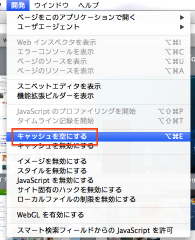 1.ツールバーの「Safari」から「キャッシュを空にする」を選択します。