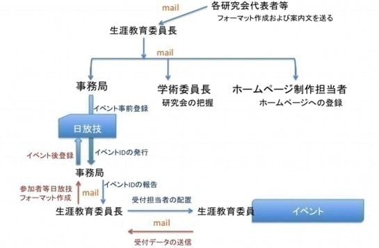 - 担当者の方は、案内文を配布する頃までに、県、支部生涯教育委員または支部長まで日程、場所、内容などをご連絡ください。 連絡を受けた方々は速やかに生涯教育委員長までご連絡ください。(手続きの都合上2週間前までにご連絡ください)