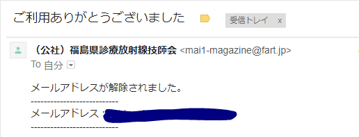 2)退会完了のメールが届きます。これで退会完了です。